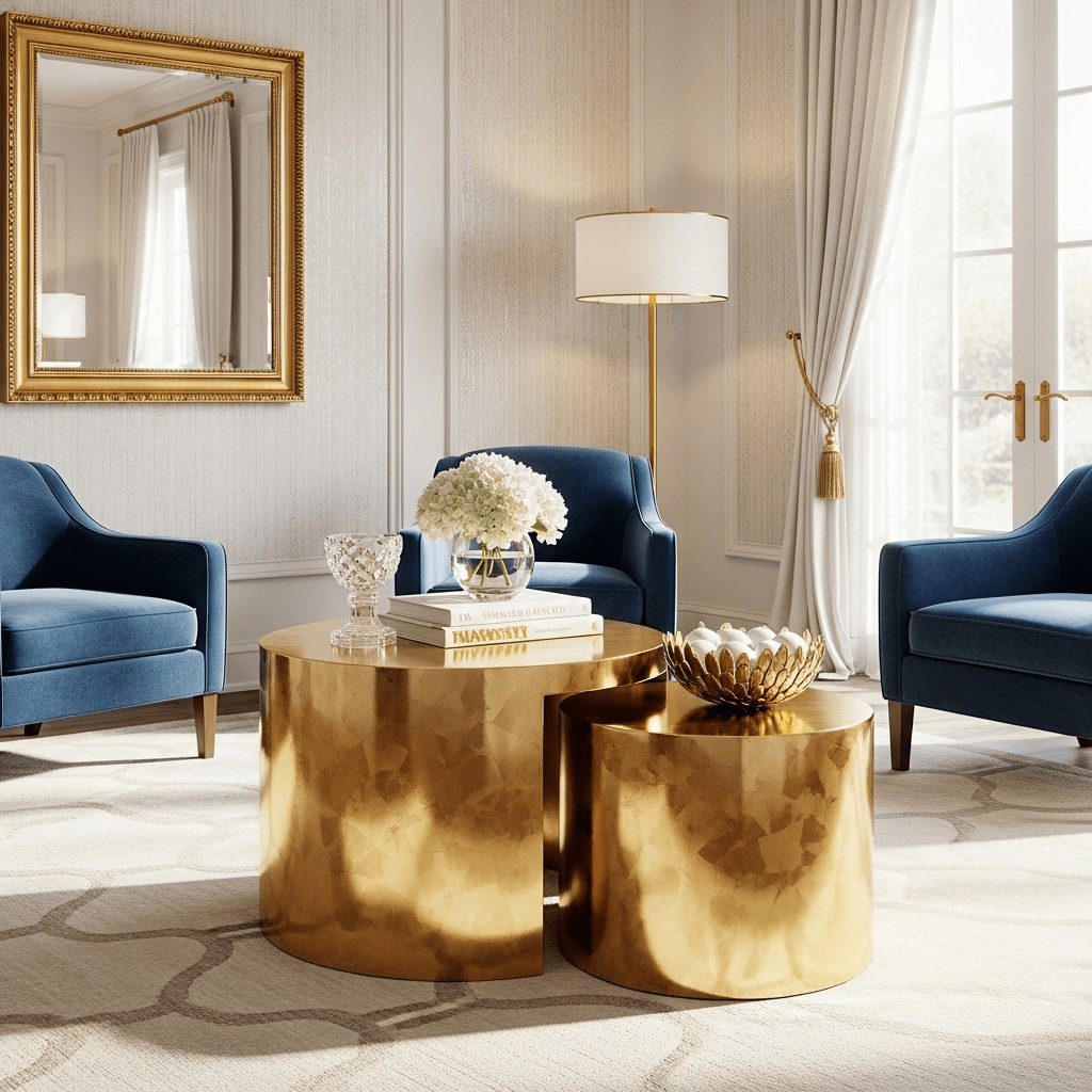 1. Gold Leaf Nesting Set: A glamorous pair of tables with shimmering metallic finishes.