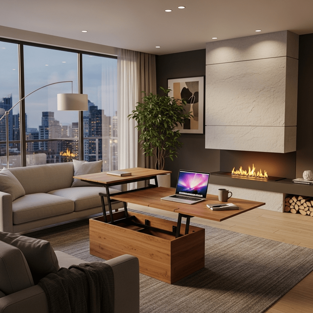 1. Lift-Top Storage Table: A coffee table that raises up to desk height for working from the sofa.