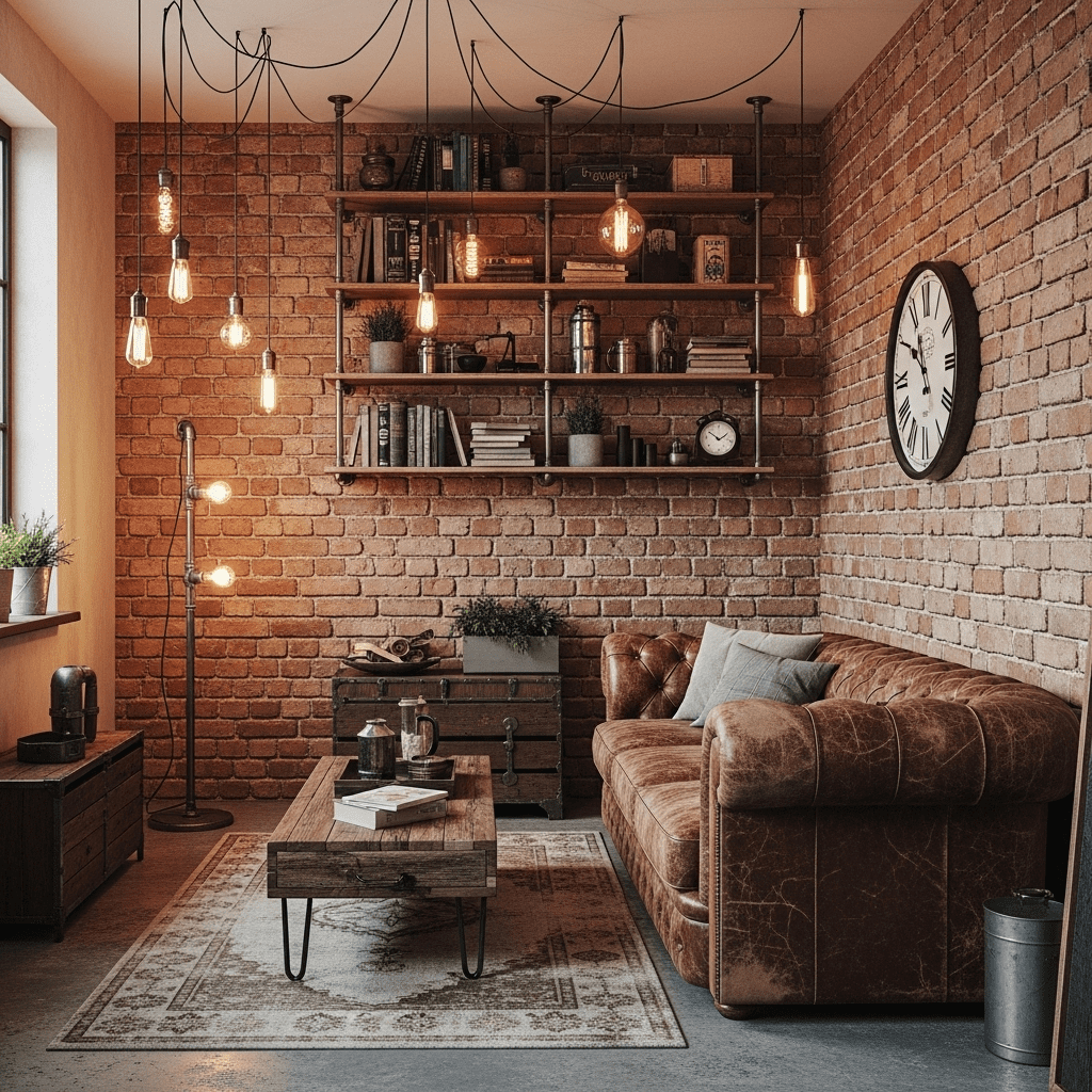 Pair exposed brick or metal shelving with vintage leather chairs and antique accessories. Add Edison bulbs and metal fixtures. The industrial-vintage fusion creates urban eclectic character.
