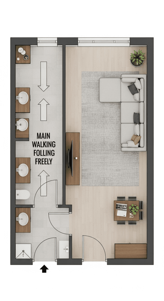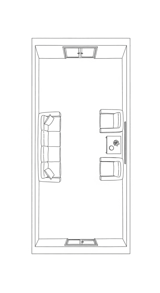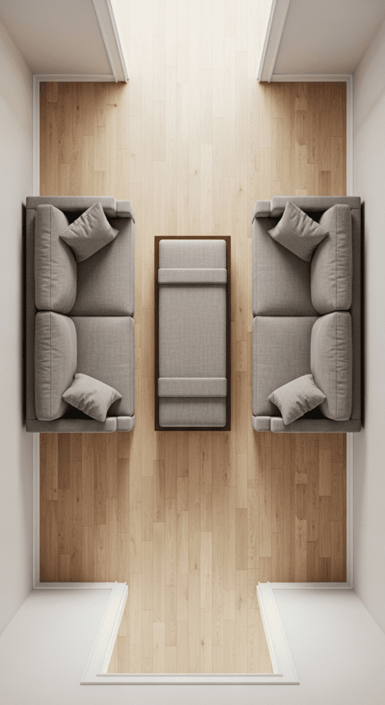 This is the foundational rule for most narrow rooms. Create one clear, central pathway from the entrance to the opposite end. Then, “flank” this walkway with your furniture placed against the two long walls. It’s straightforward and highly effective for maintaining flow.