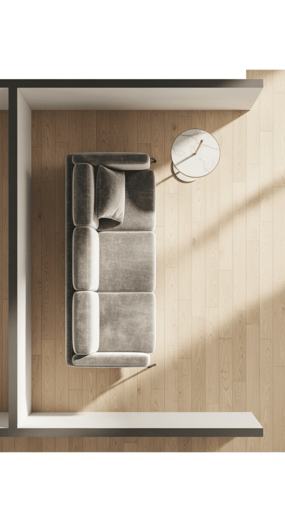 Choose furniture with a low profile and exposed legs. Armless sofas, slim side tables, and leggy chairs allow light and sightlines to travel under and around them, making the space feel airier and less cluttered. Every piece should earn its footprint.