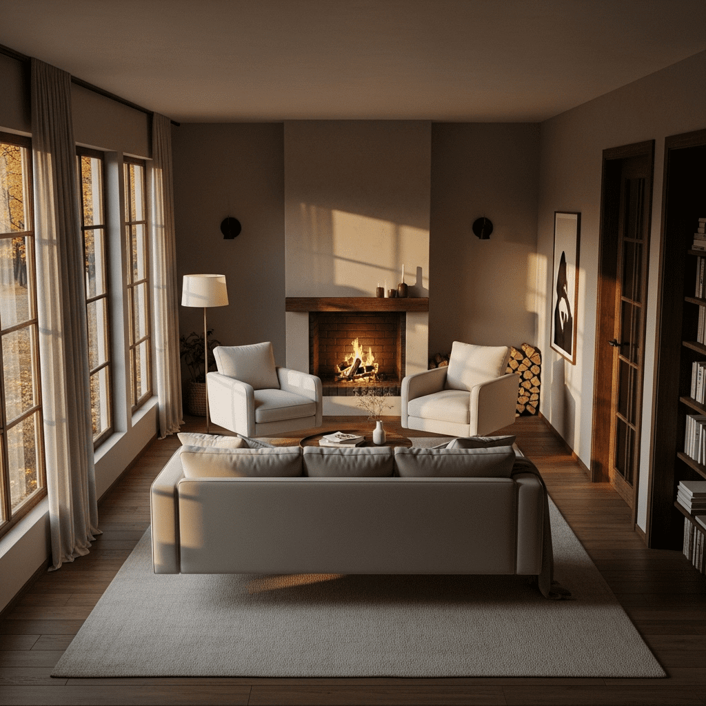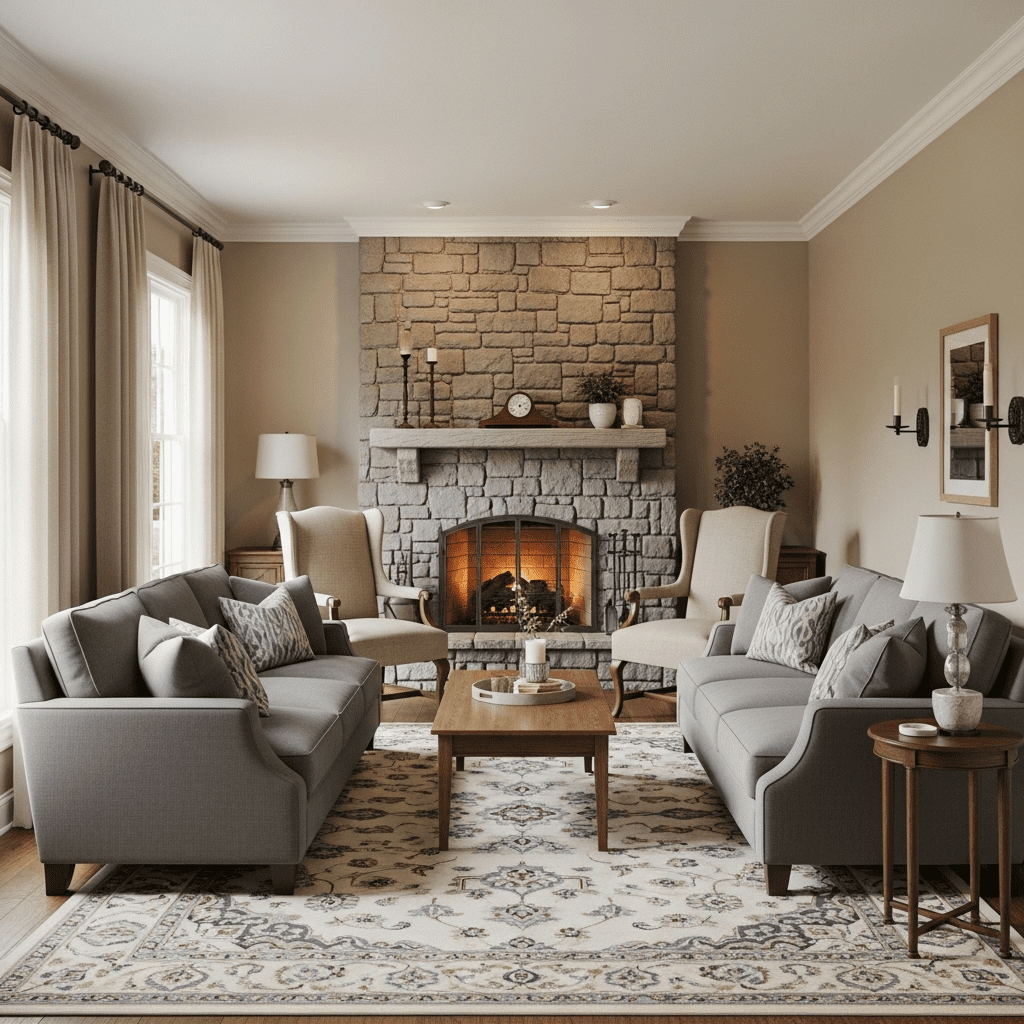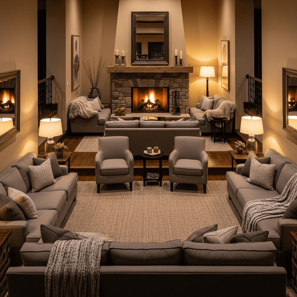 Face the Fire: Always orient primary seating to face or angle toward the fireplace. It’s your room’s best feature—celebrate it.