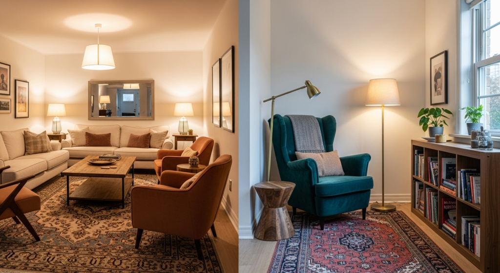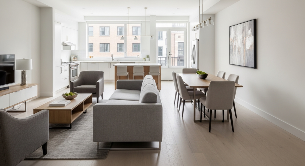 Traffic Flow First: Before placing any furniture, map out your primary traffic paths. Maintain at least 30-36 inches of clearance for comfortable walking, and ensure furniture placement doesn’t create awkward bottlenecks.