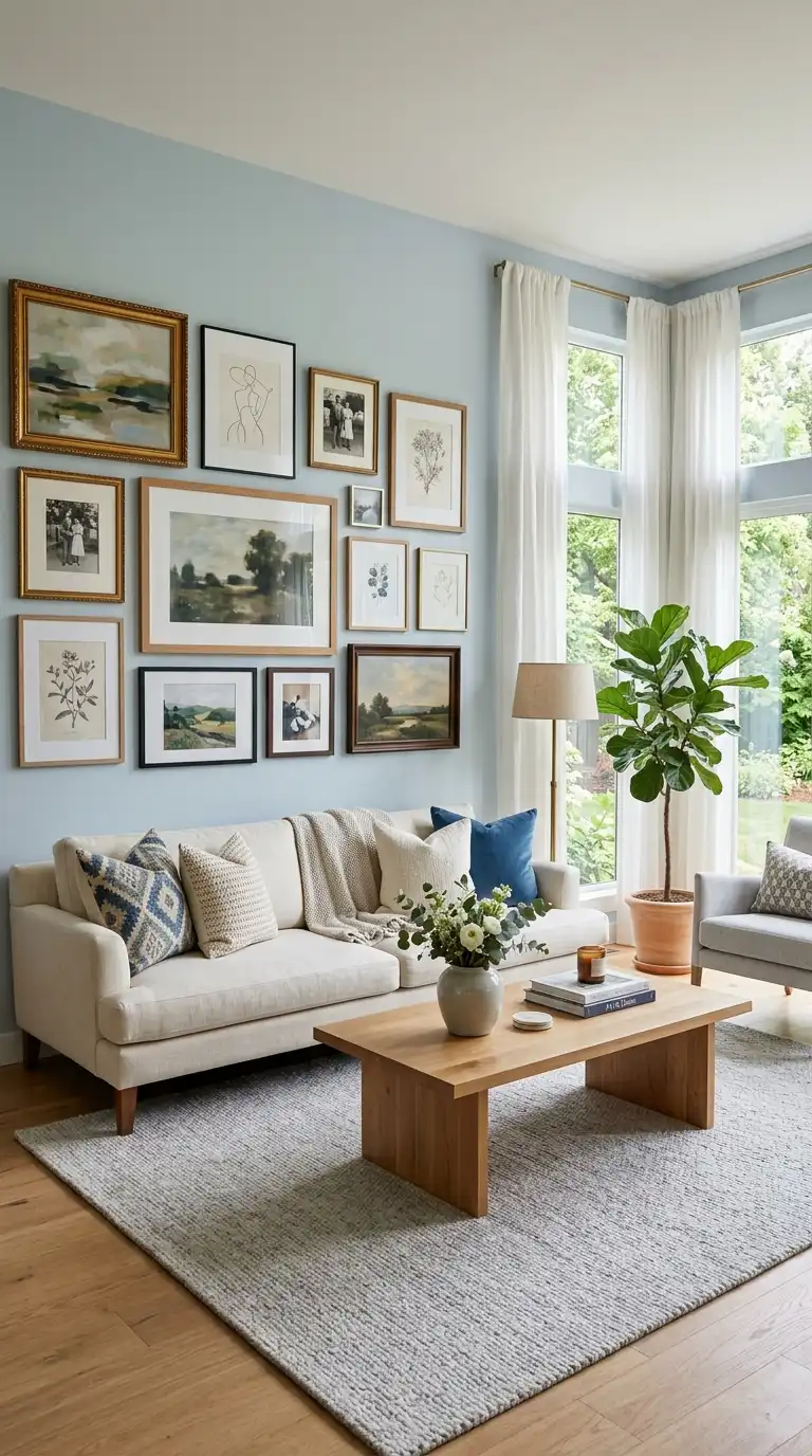 4. Light Blue Walls with a Gallery Wall