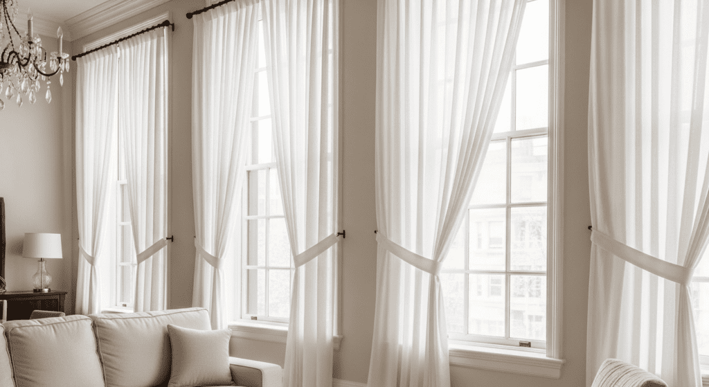 4. Floor-to-Ceiling Sheer Curtain Drama