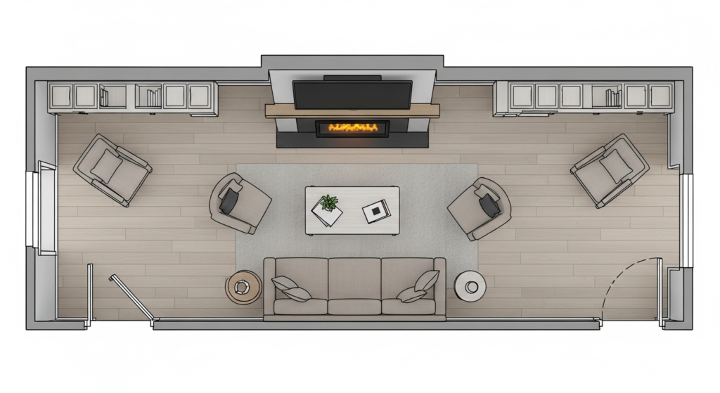 With these nine proven layouts and professional fireplace planning guidance, you can create a long narrow living room where the fireplace shines as the beautiful focal point it should be. Your challenging space can become the cozy, inviting room you’ve always wanted—proof that limitations often inspire the most creative and comfortable solutions