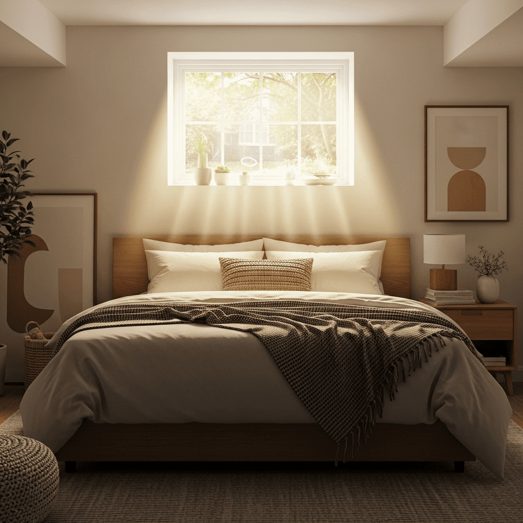 For completely windowless rooms, install a large decorative window frame with frosted glass and place LED strips behind it. This mimics the glow of natural daylight and eliminates the “dungeon” feel.