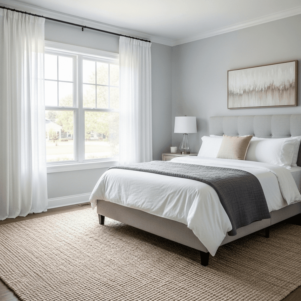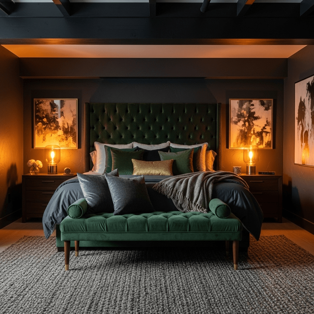 Place a large mirror or a series of mirrored panels behind the headboard. This doubles the visual depth of the room and reflects the doorway’s light, making the space feel twice as large.