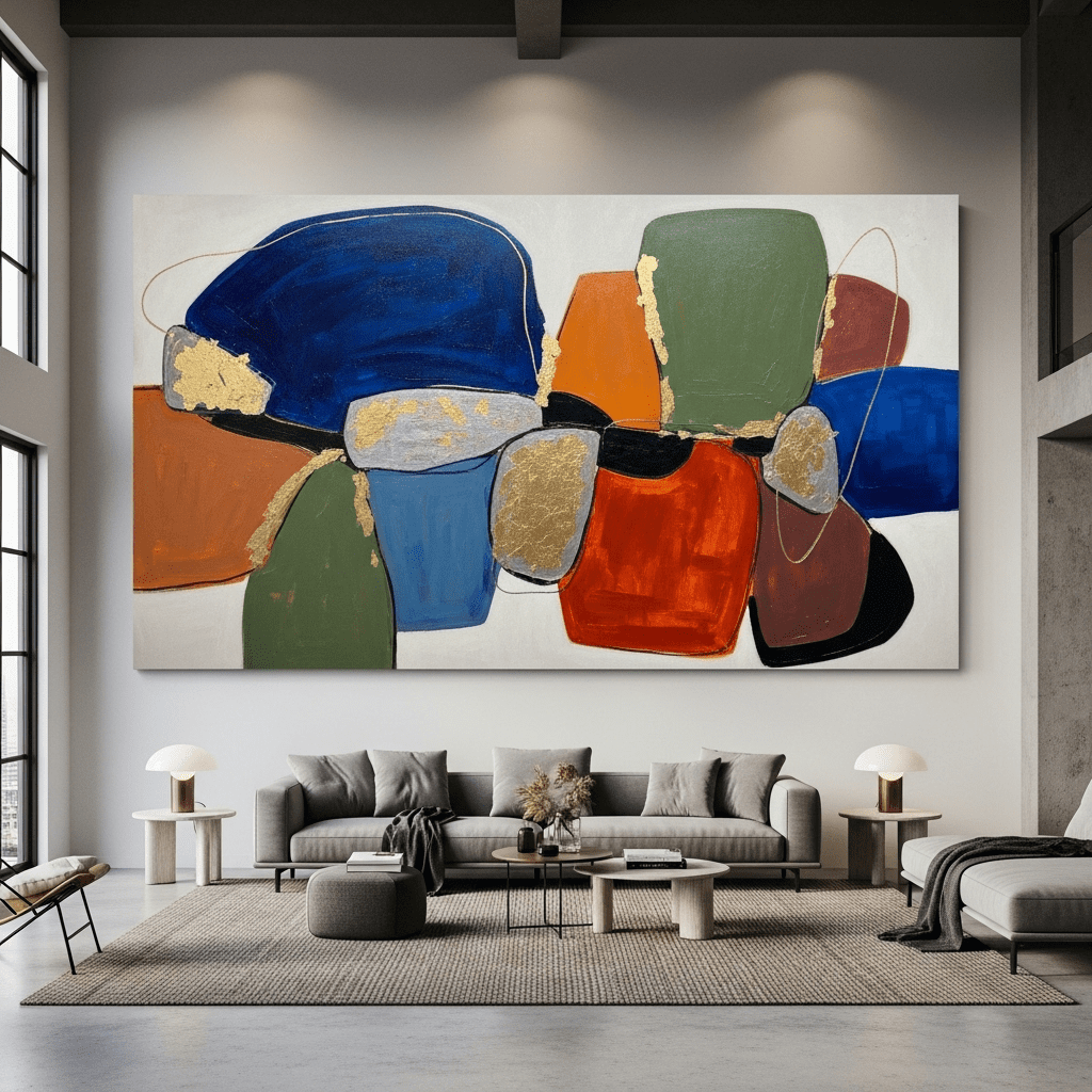 Single massive artwork or sculptural installation sized appropriately for large walls creates proportional visual impact. Timid art disappears in big rooms; bold, oversized pieces command the attention such spaces demand.