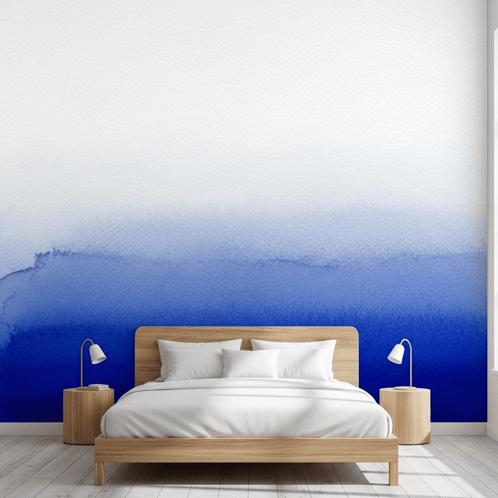 Install a wallpaper mural that fades from a deep ocean blue at the floor to a pale mist at the ceiling. This “ombre” effect is visually soothing and makes the room feel ethereal and vast.
