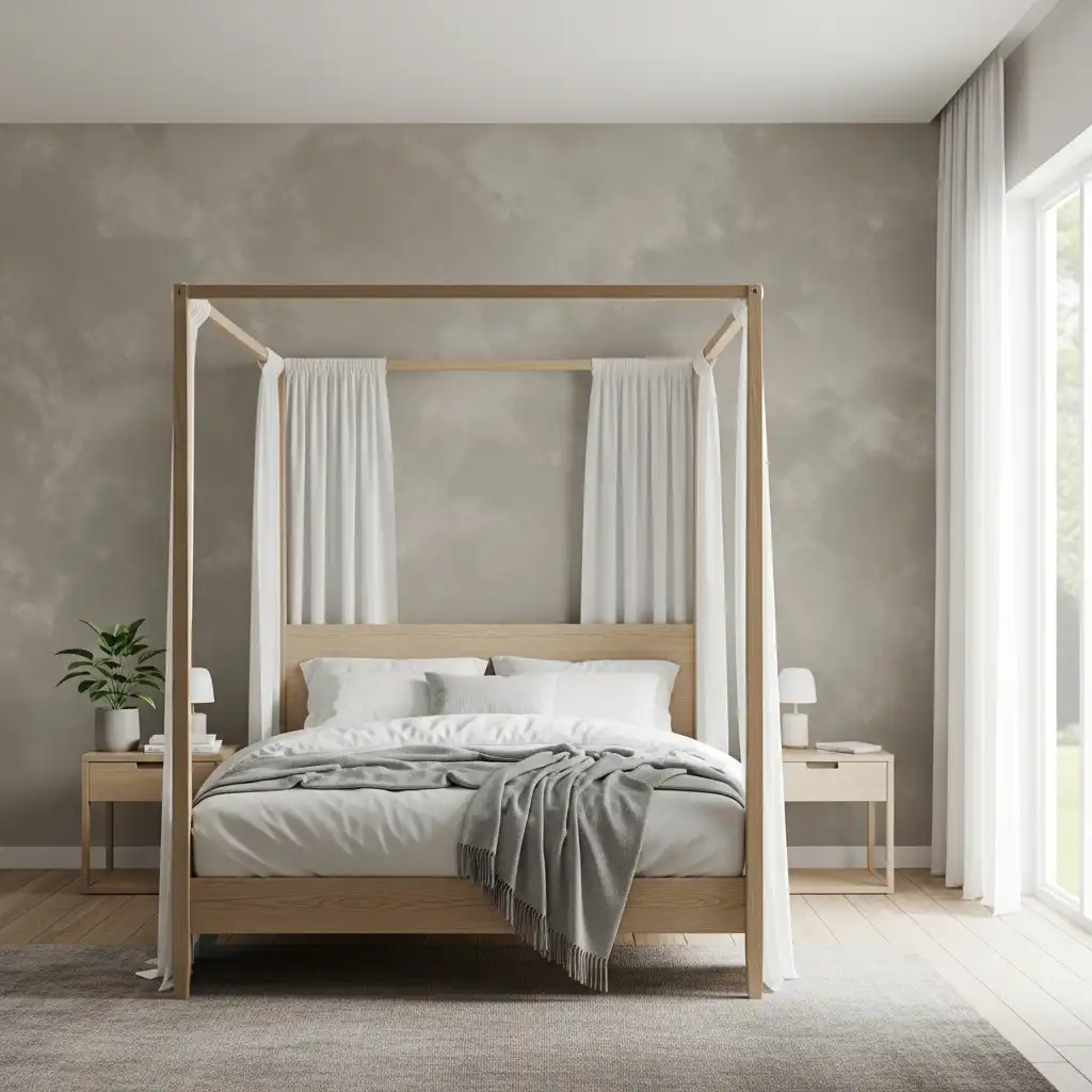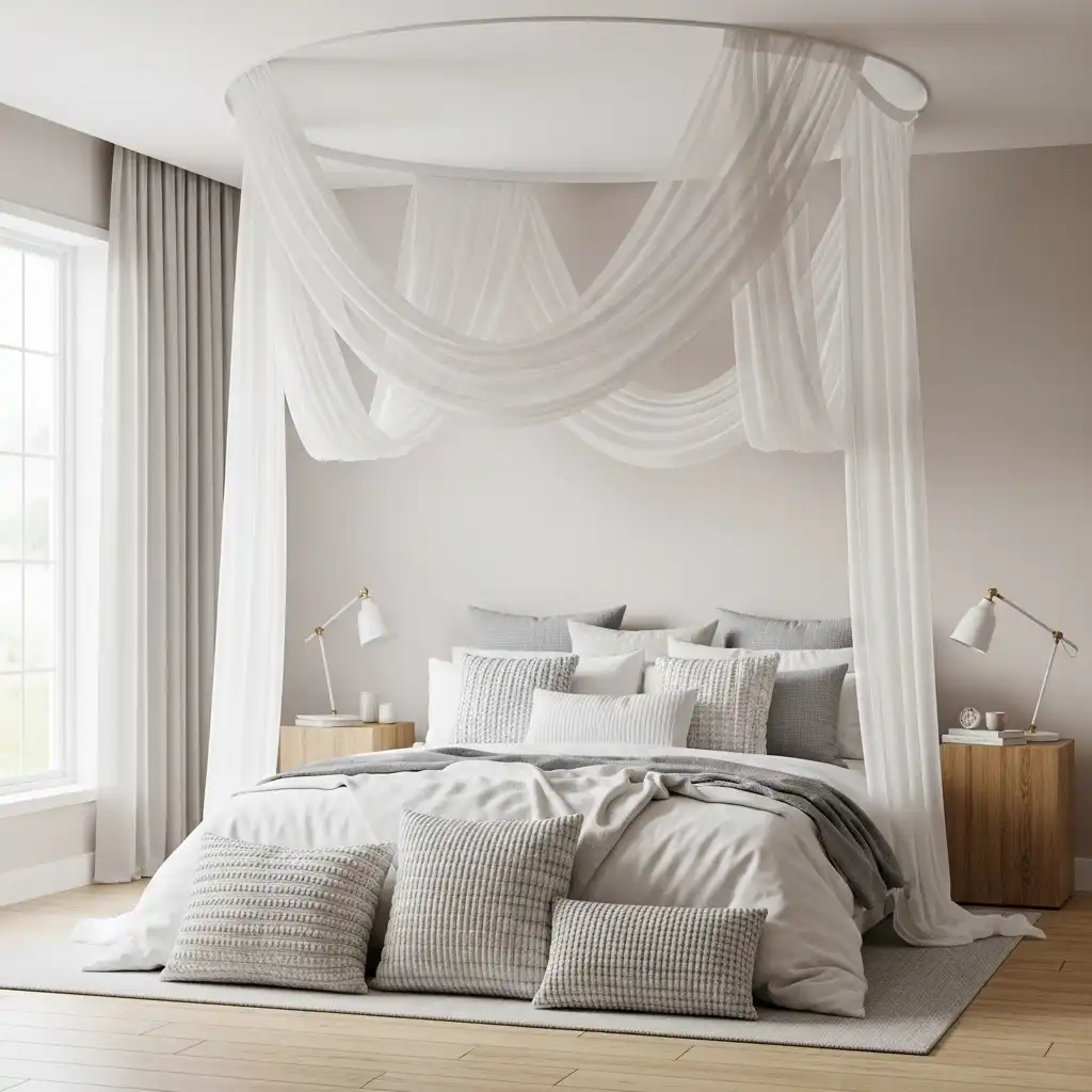 Even without a canopy bed, you can mount a sheer, ethereal netting from the ceiling. It adds a dreamlike, “safari-chic” layer that feels incredibly romantic and private.