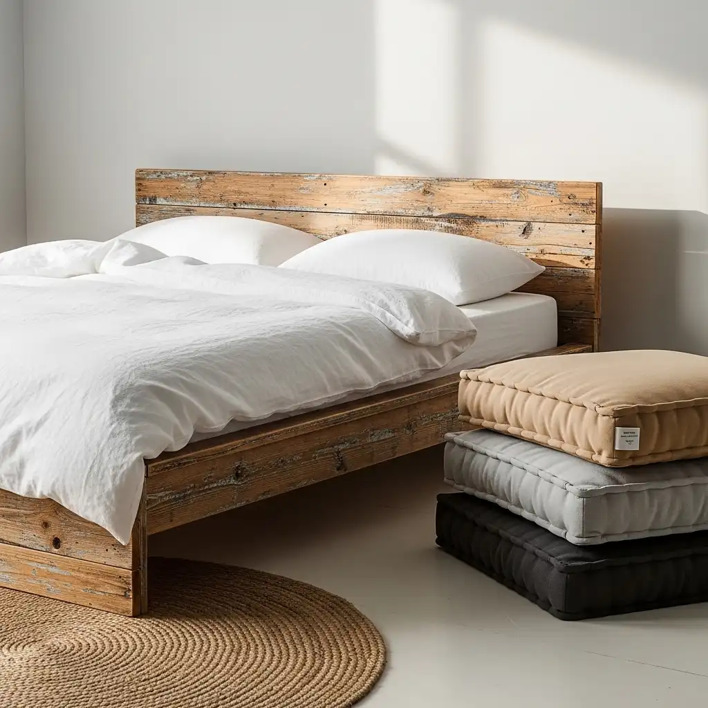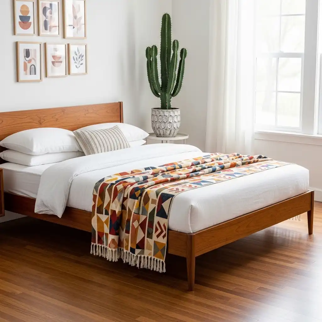 Embrace the “grounded” aspect of boho design with an ultra-low wooden platform bed. This lowers the room’s center of gravity, making the space feel more open, relaxed, and connected to the earth.