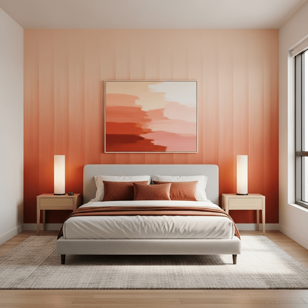 Use a sponge or blending technique to transition walls from a deep terracotta at the bottom to a soft peach at the top. This mimics a sunset and creates a warm, glowing atmosphere.