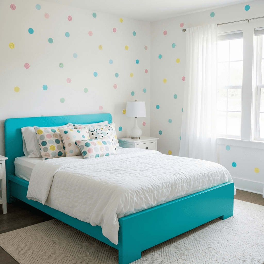 For a playful guest room, use colorful decal dots or hand-painted circles in various sizes. It’s an energetic look that works exceptionally well in rooms meant for grandchildren or younger guests.