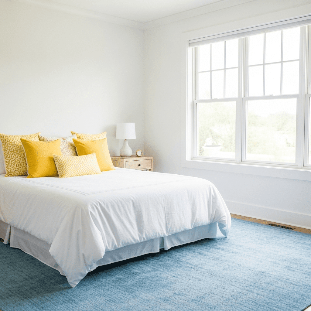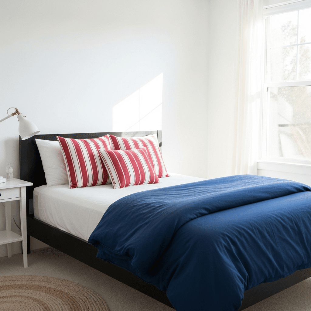 A classic colorful trio that never goes out of style. It feels structured, clean, and traditionally welcoming, perfect for a coastal or suburban guest home.