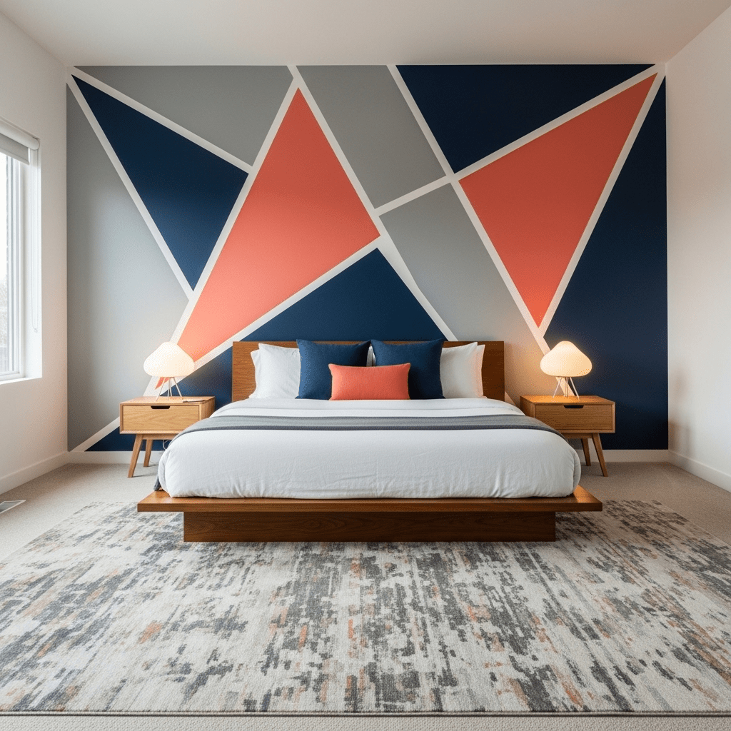 Use painter’s tape to create large geometric shapes in different colors on the walls. This modern art approach turns the architecture of the room into a vibrant canvas.
