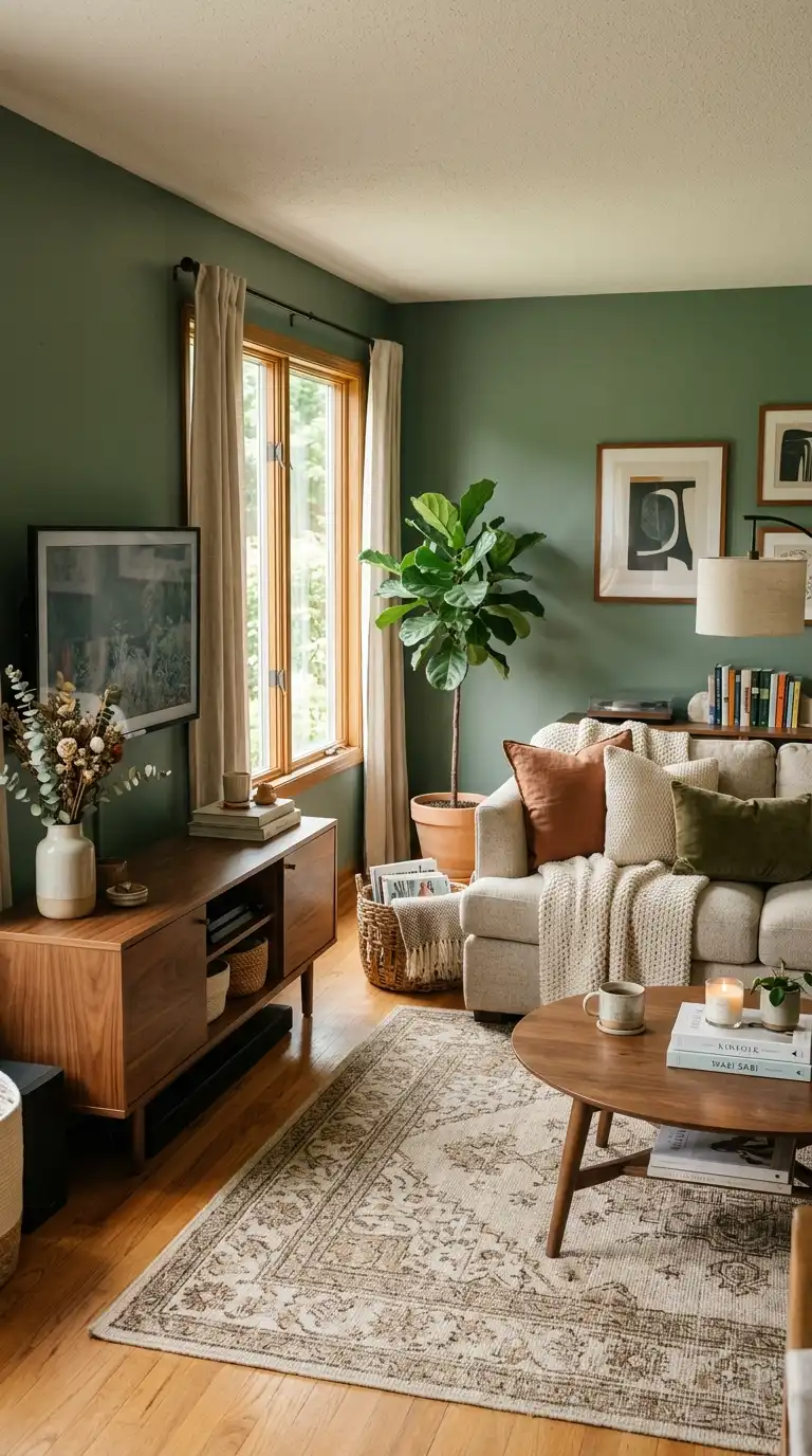 Move away from white and paint the walls in a soft terracotta, sage, or dusty ochre. These colors harmonize with natural wood grains to create a “hug-like” environment.
