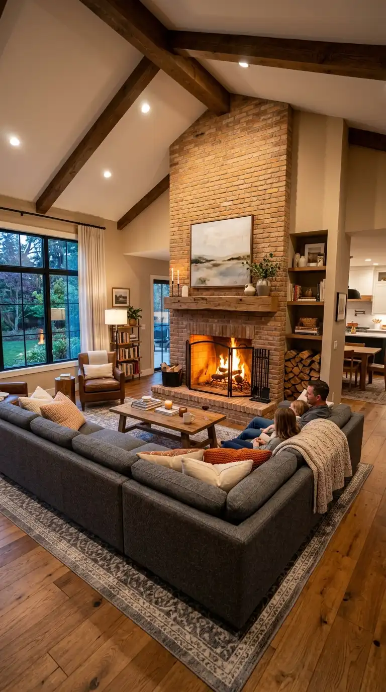 If your home features a central brick fireplace, arrange your seating close to the hearth. Lowering the furniture profile creates an intimate, fire-side “pit” feel that is quintessential 1960s cozy.