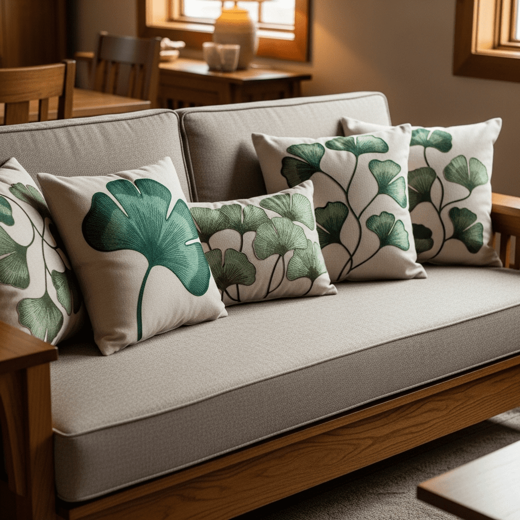 Adding subtle visual interest with stenciled borders or embroidered pillows featuring stylized nature motifs like pinecones, gingko leaves, or acorns.
