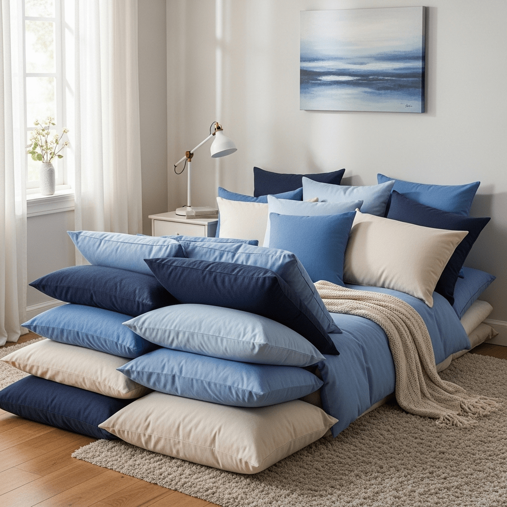 Since daybeds are deep, use three layers of pillows: large shams in the back, standard pillows in the middle, and decorative lumbar pillows in front. This makes the “sofa” depth comfortable for sitting.