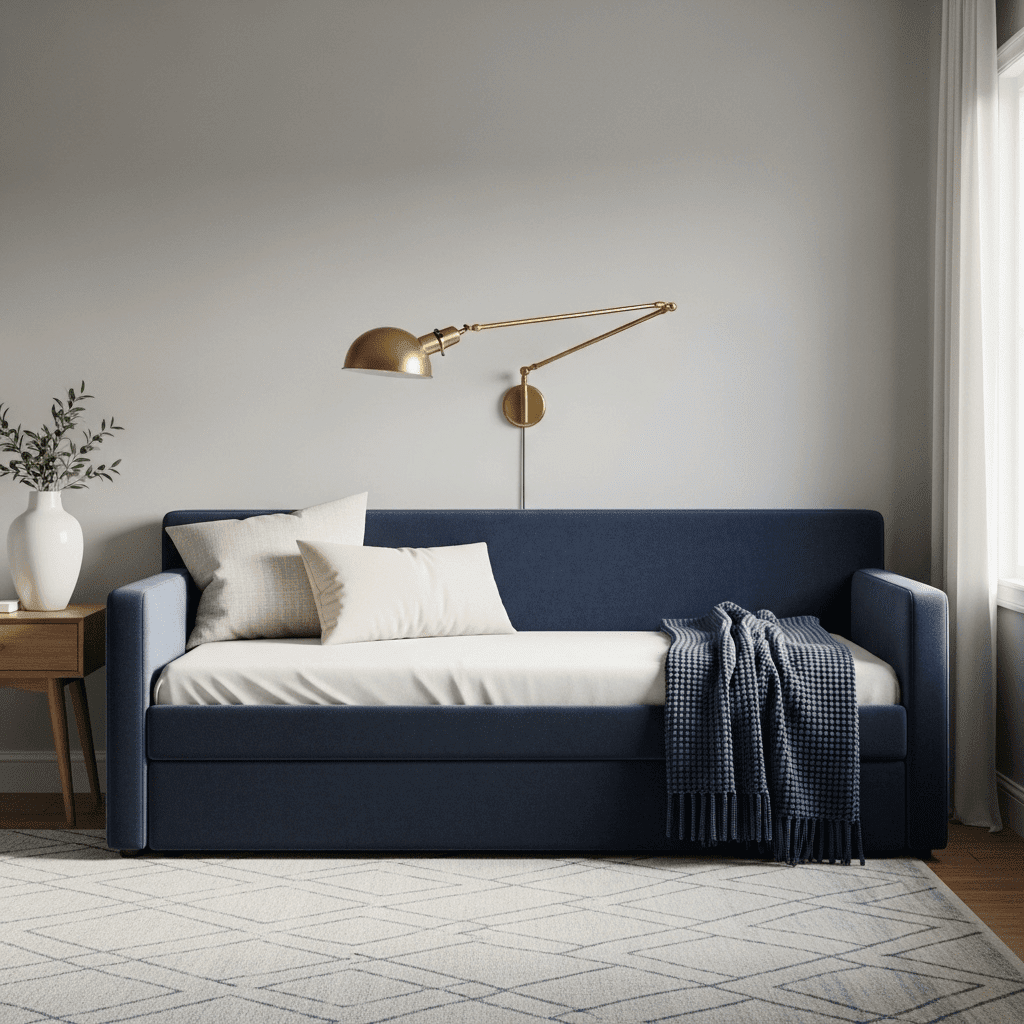 Choose a daybed with clean lines and tapered wooden legs in a rich velvet fabric. This turns the piece into a high-end sofa that anchors the room, making it feel more like a sophisticated lounge than a bedroom.