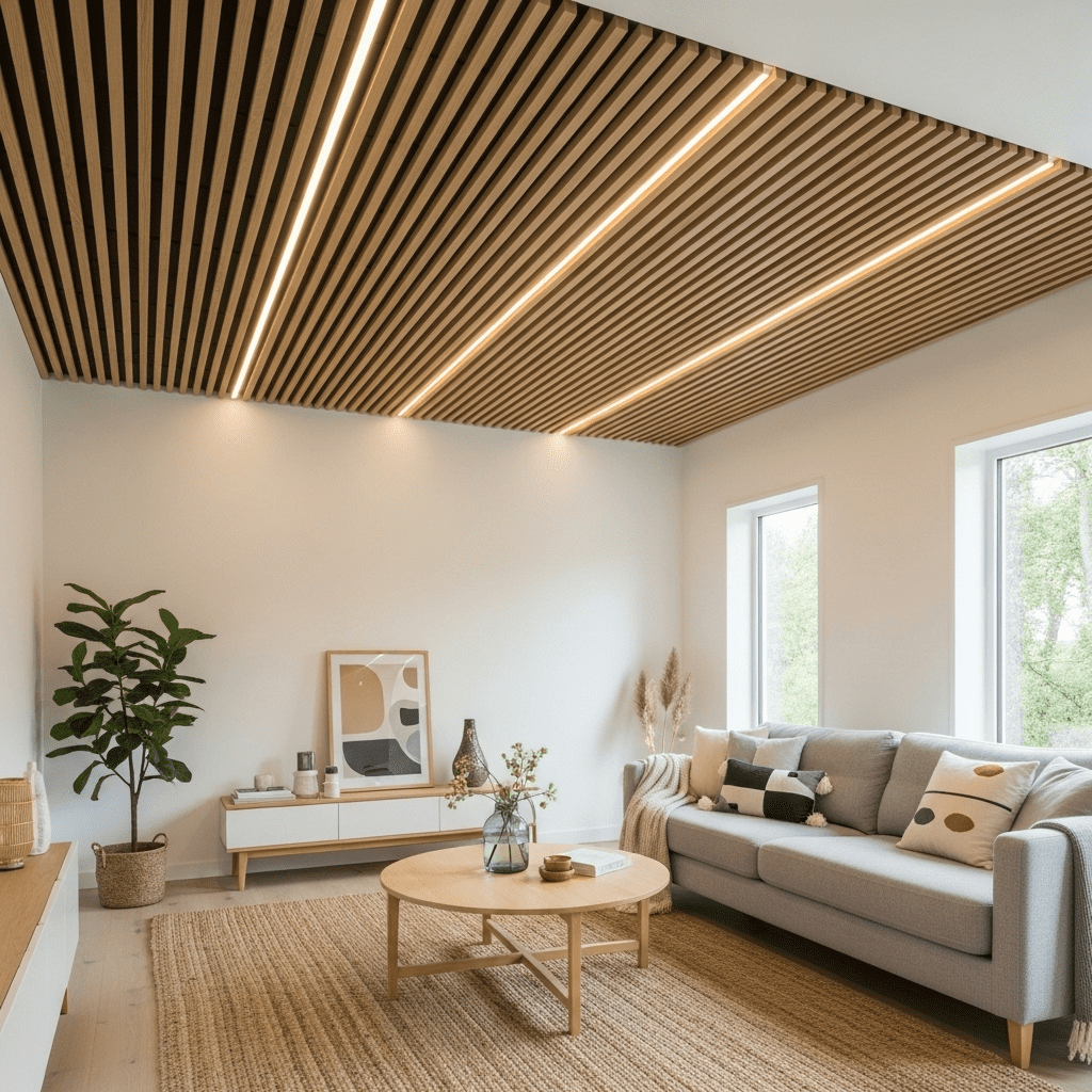 4. Wooden Slat Ceiling