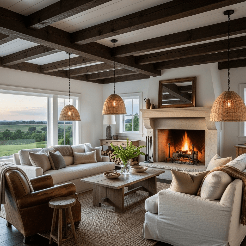 Farmhouse living rooms succeed where elaborate design philosophies often fail—they make people genuinely comfortable the moment they walk in. This warmth stems from farmhouse design’s fundamental honesty. Nothing pretends to be something it isn’t. Wood shows its grain proudly. Metal wears its patina without apology. Fabrics invite touch rather than demanding admiration from a distance.