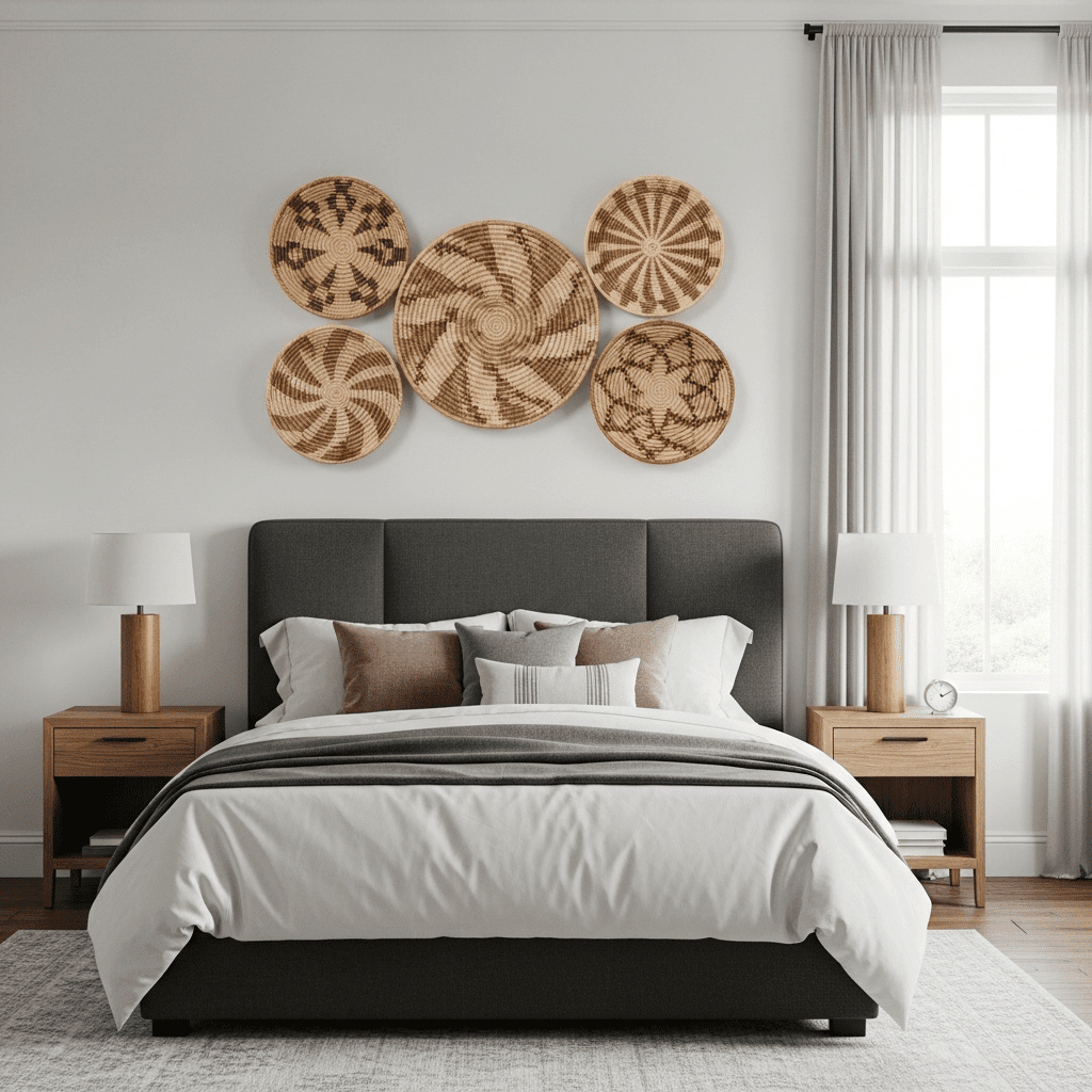 Baskets aren’t just for floors. A collection of shallow, colorful African or boho baskets hung on the wall provides a textured, 3D alternative to traditional framed art.