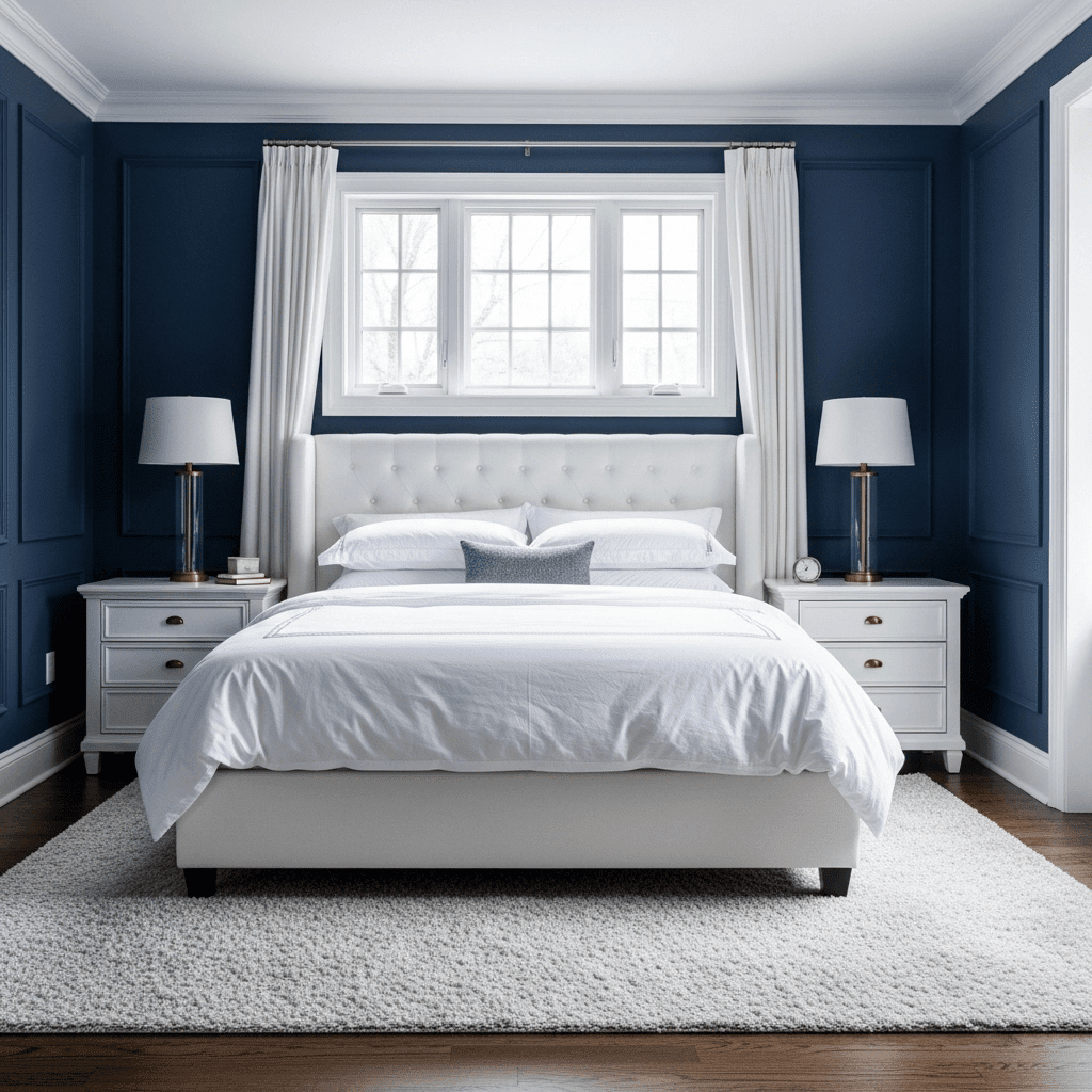 A timeless, high-contrast palette that feels clean and structured. It evokes a nautical or “Hamptons” aesthetic that is universally liked and always looks polished.