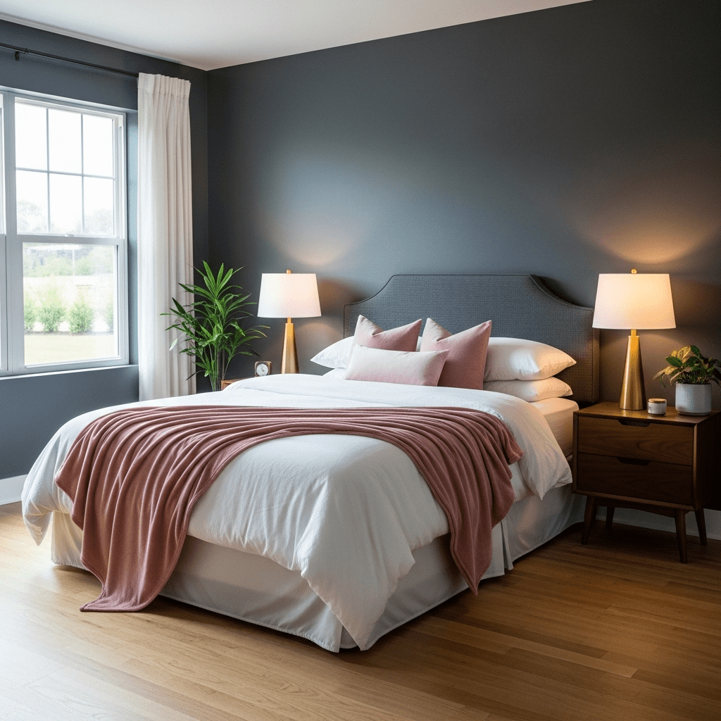 Peach offers a softer, warmer alternative to pink, while pewter grey adds a metallic, modern edge that keeps the room feeling contemporary.