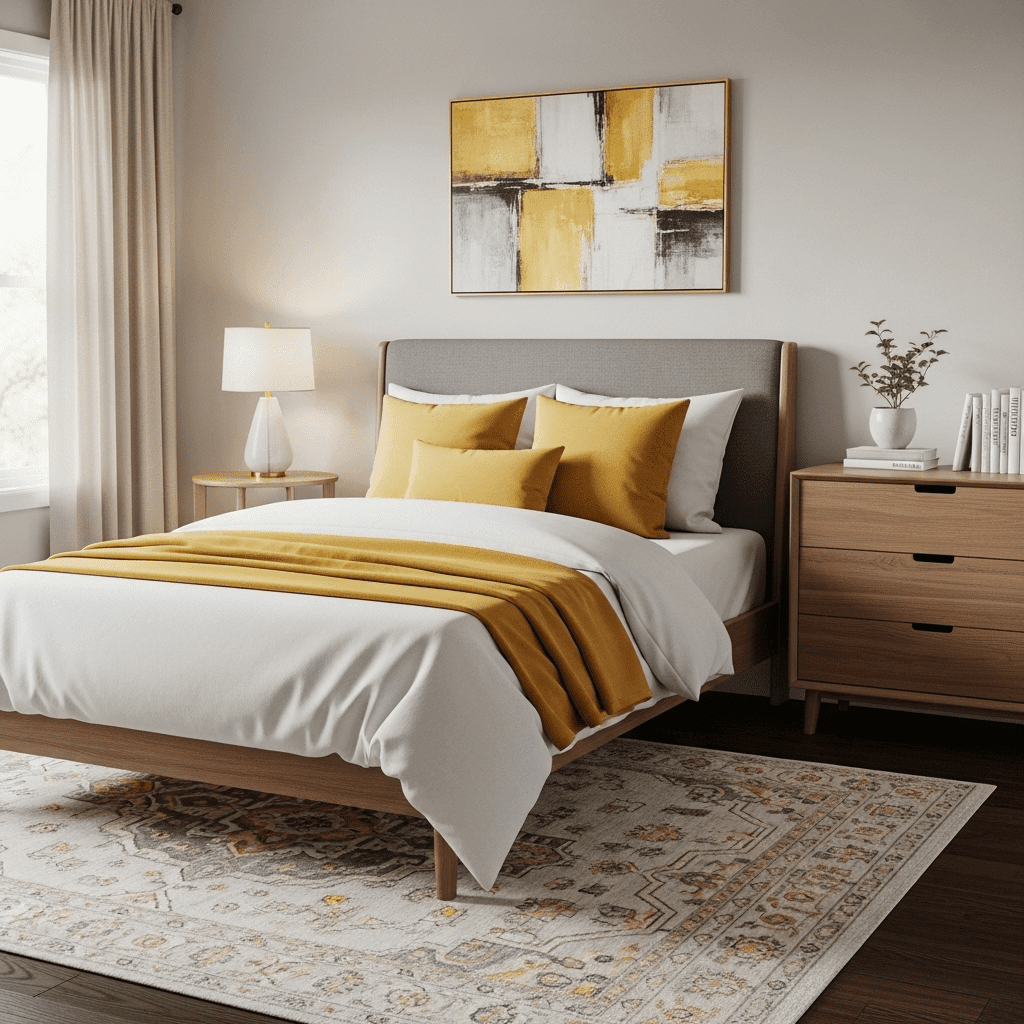 Slate grey provides a cool, neutral backdrop that allows pops of mustard yellow to shine. It’s a modern, mid-century inspired look that feels energetic and optimistic.