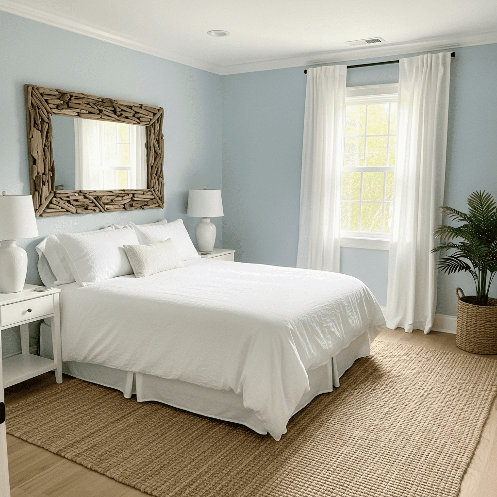 Inspired by the seaside, this design uses a palette of soft blues, sandy beiges, and crisp whites. Incorporate natural textures like jute rugs and weathered wood to create a permanent vacation vibe.