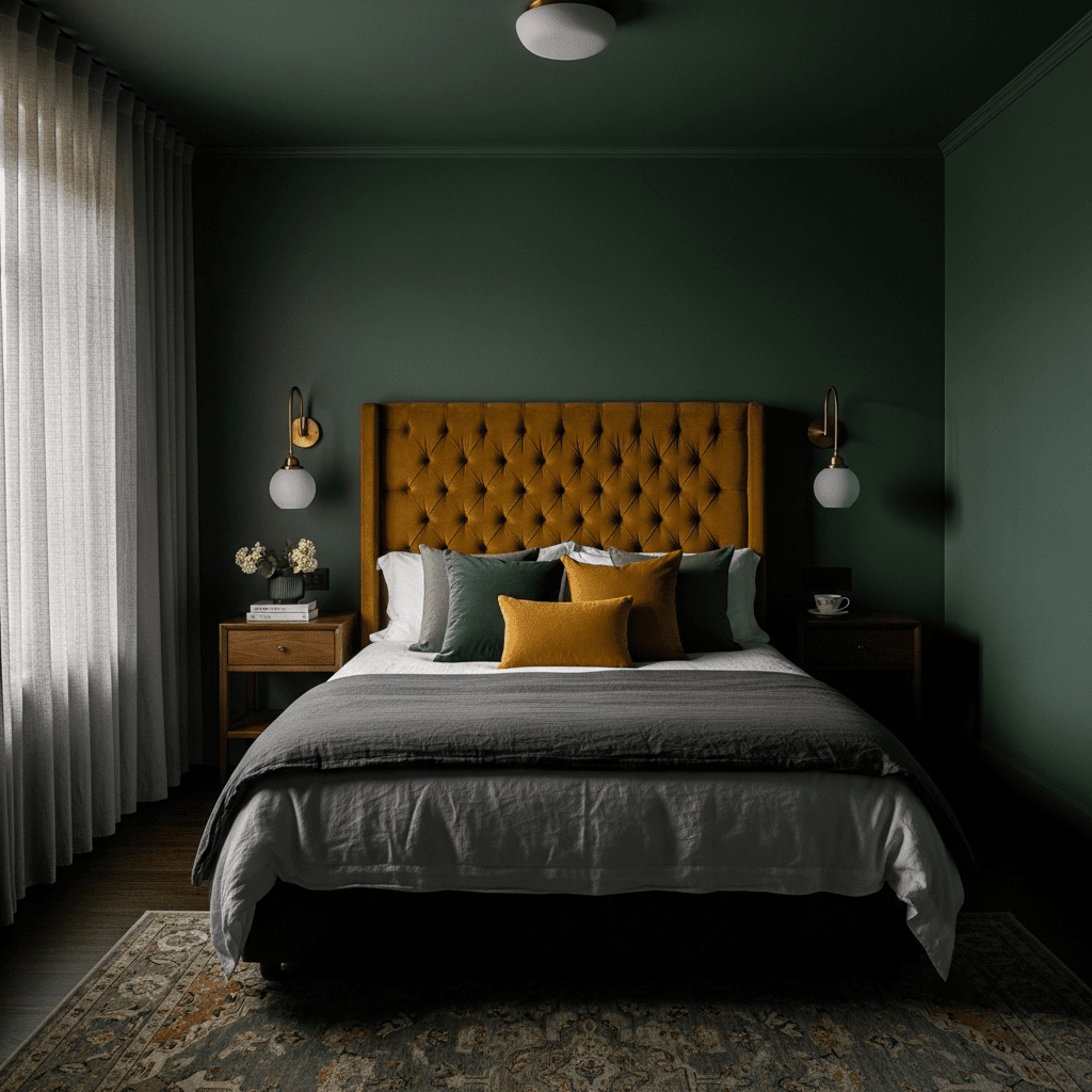Dark, saturated wall colors like forest green or deep navy create an intimate and luxurious atmosphere. Pair these with brass hardware and velvet upholstery for a sophisticated, high-end look.