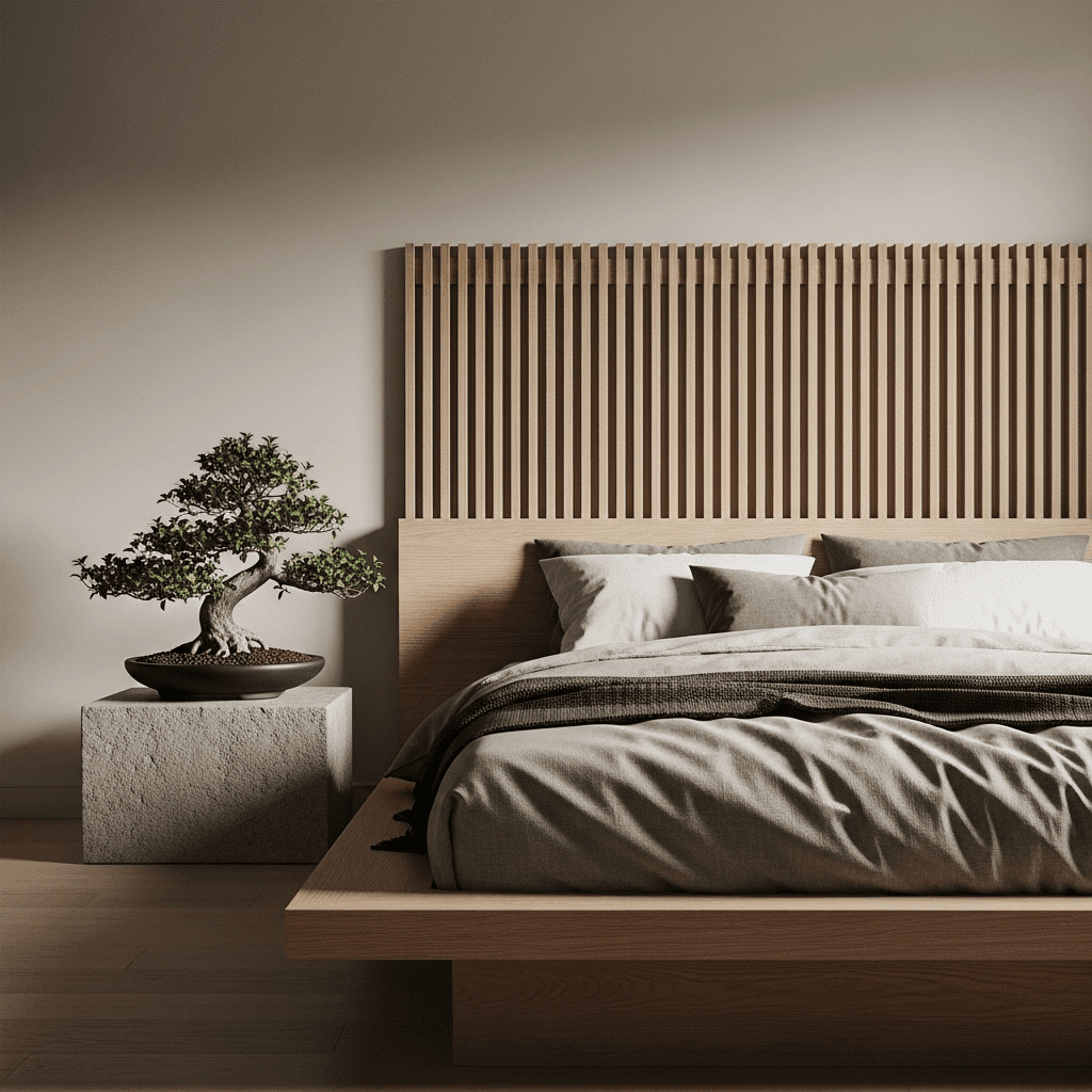 A blend of Japanese functionality and Scandinavian warmth, this design focuses on low-profile furniture and slatted wood elements. It creates a clutter-free environment that promotes deep rest.