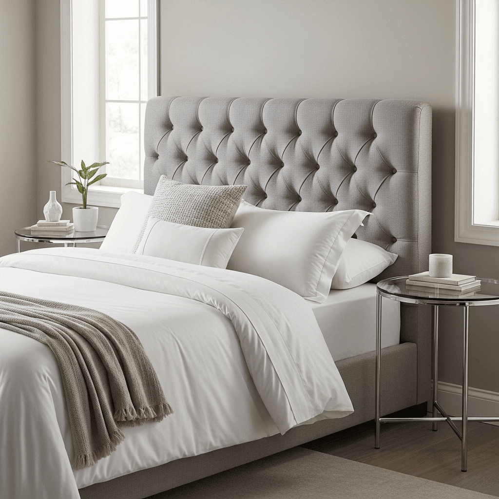 A mix of traditional silhouettes and modern finishes, this style is the “goldilocks” of design. Think classic tufted headboards paired with sleek, contemporary glass nightstands.