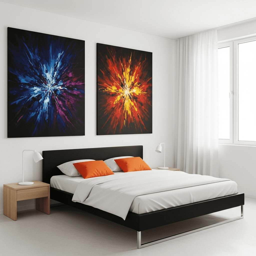 White walls serve as a backdrop for oversized, bold artwork. Use black furniture and colorful accent pillows to pull colors from the art, making the room feel like a curated gallery.