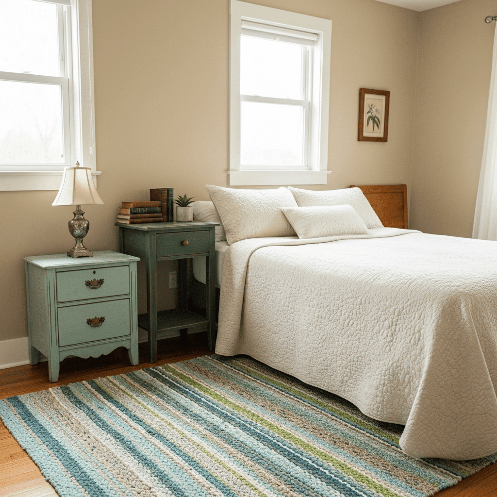 Instead of buying new furniture, look for old side tables at thrift stores or use items you already own, like a sturdy wooden crate or a stack of vintage suitcases. A quick sanding and a new coat of paint can make them look brand new.