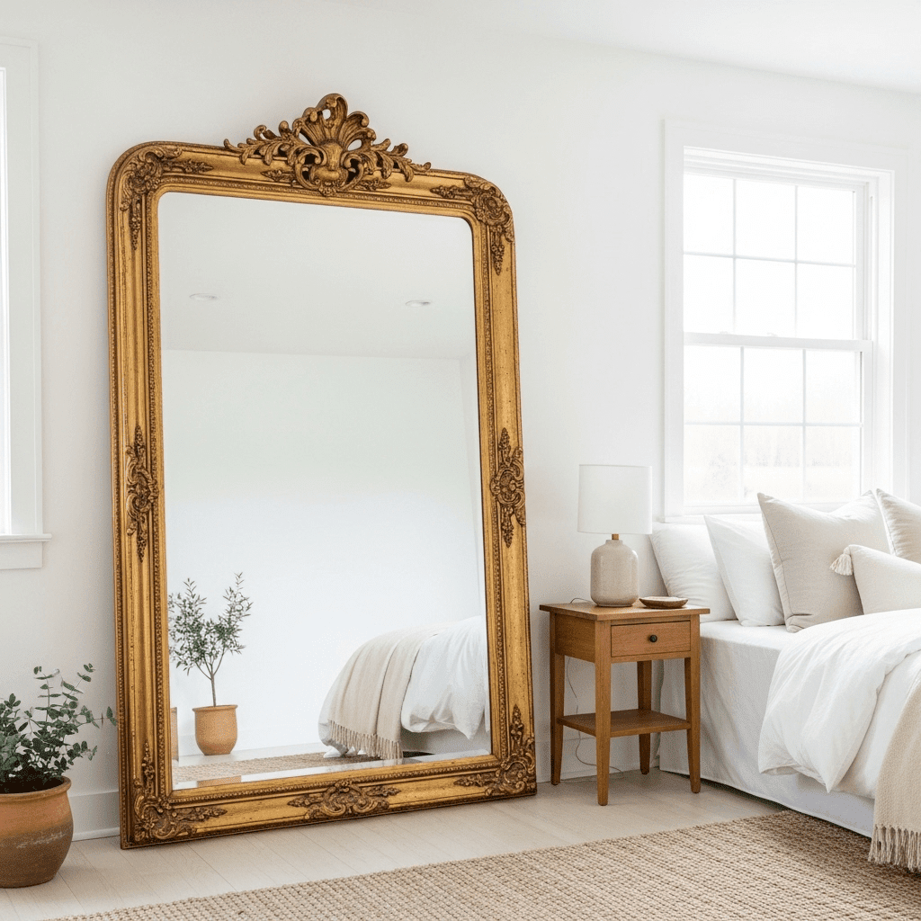 A large second-hand mirror can be found for a fraction of the retail price at garage sales. It opens up the room and reflects light, making a small, budget-conscious space feel much larger.