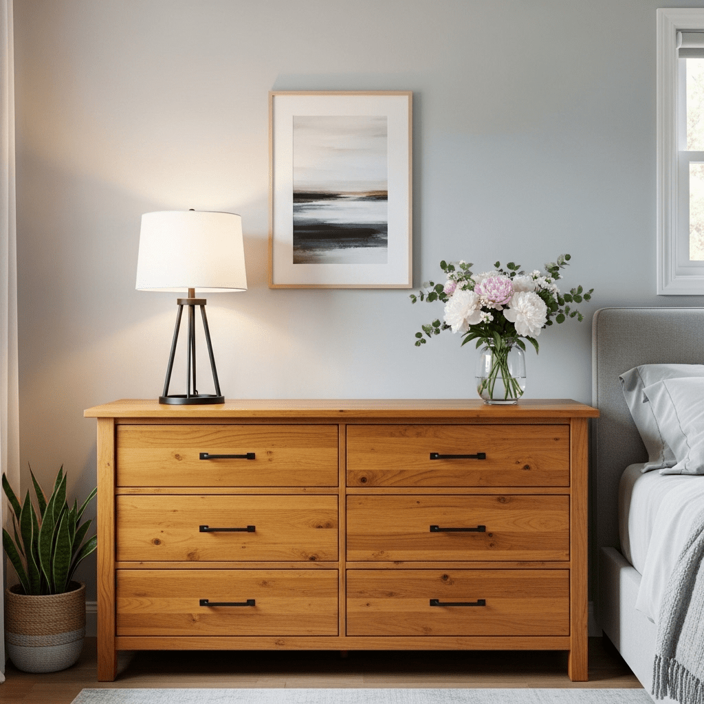 If the room has an old dresser, simply replacing the standard knobs with modern brass or matte black pulls can give it an instant mid-century modern or contemporary upgrade for very little cost.