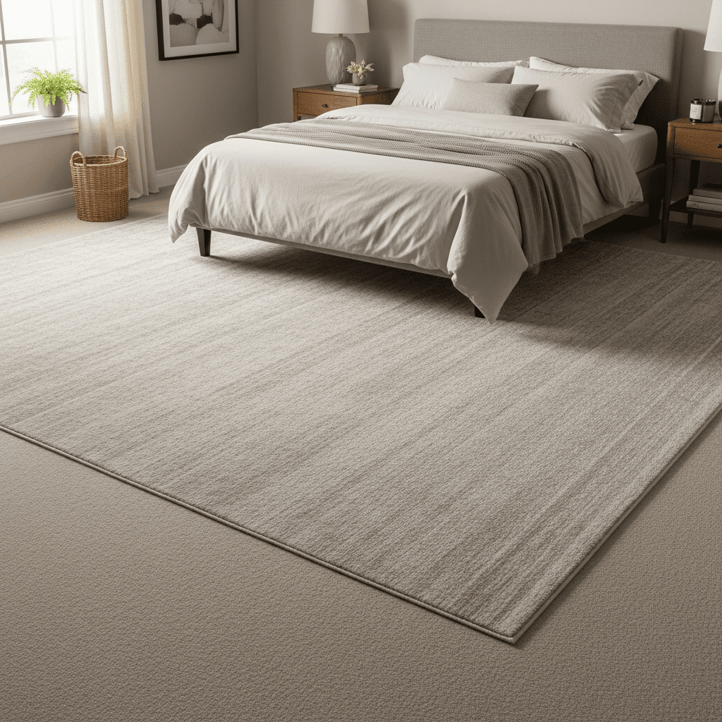 If the carpet is dated or the floors are scuffed, a large, affordable jute or low-pile rug can cover the imperfections and ground the room’s design.