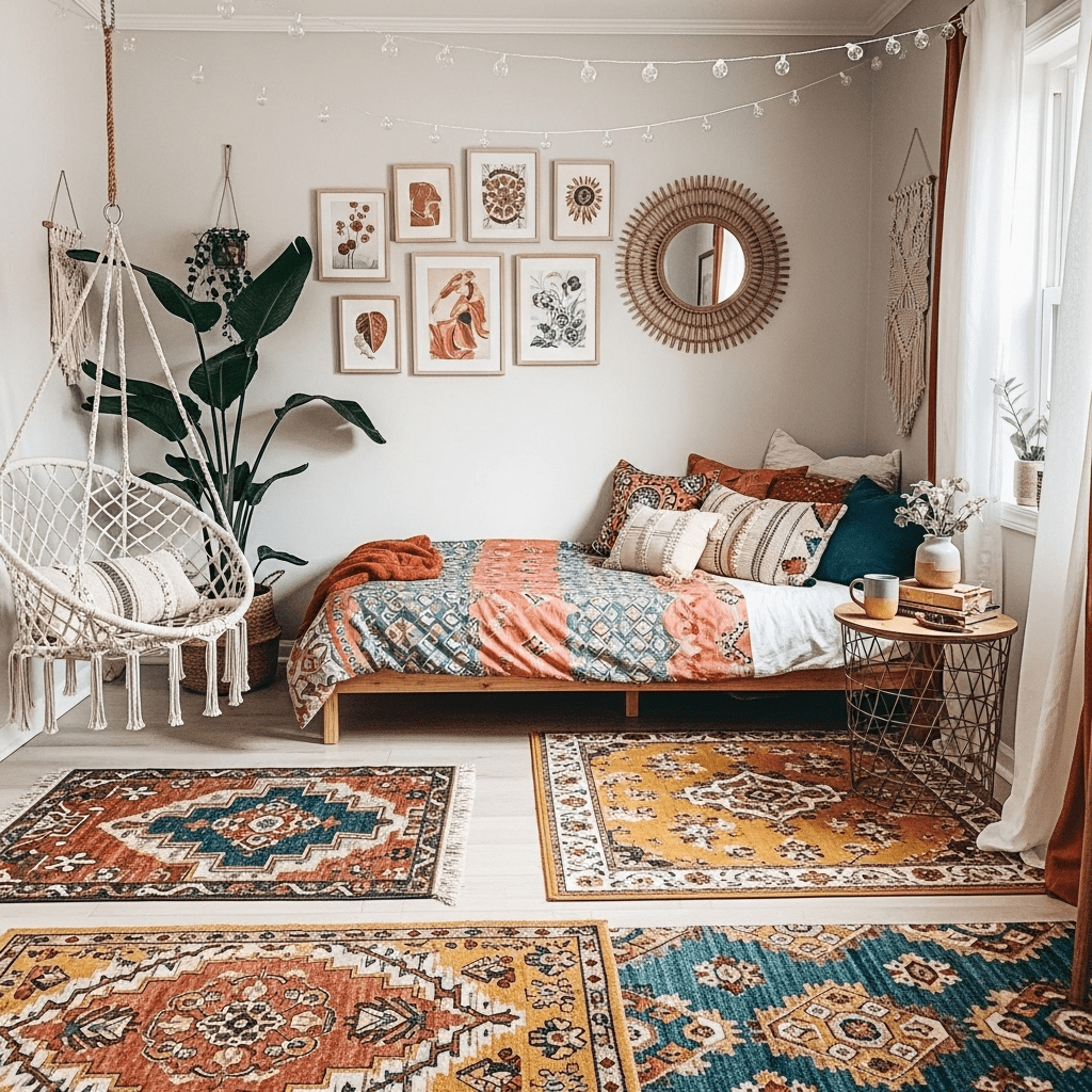 Incorporate a mix of patterns from around the world, such as Ikat or Kilim. Use low-slung furniture, macramé wall hangings, and floor cushions to create a relaxed, world-traveler vibe.