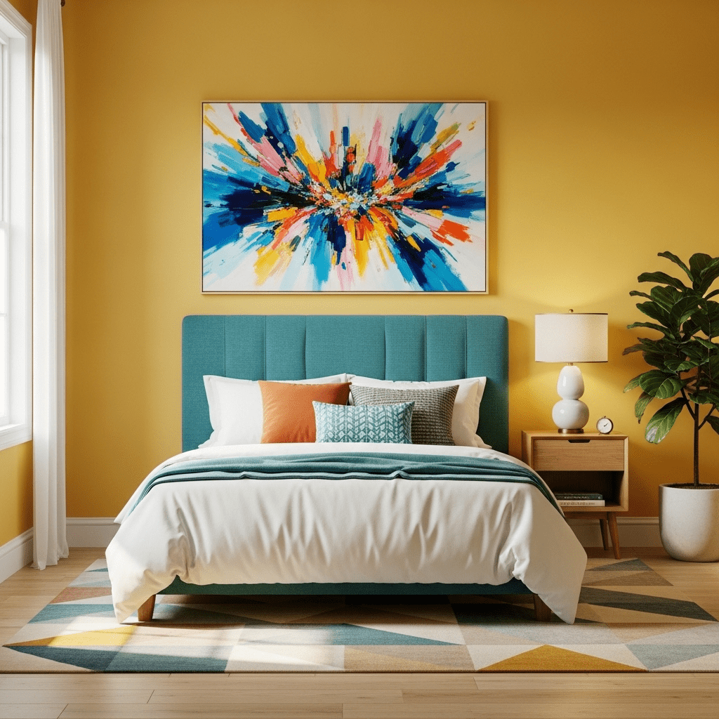If you love color, don’t be afraid to go bold. Use contrasting colors like mustard yellow and teal. A maximalist guest room feels energetic, joyful, and full of personality.