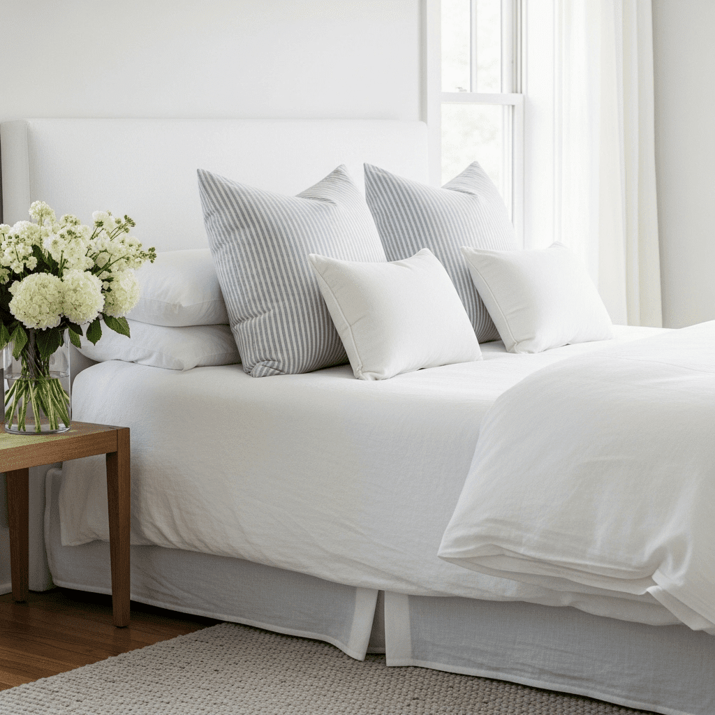 Inspired by the “coastal grandmother” aesthetic, use high-quality linens, blue and white stripes, and bowls of fresh hydrangeas. It’s the ultimate in comfortable, understated luxury.
