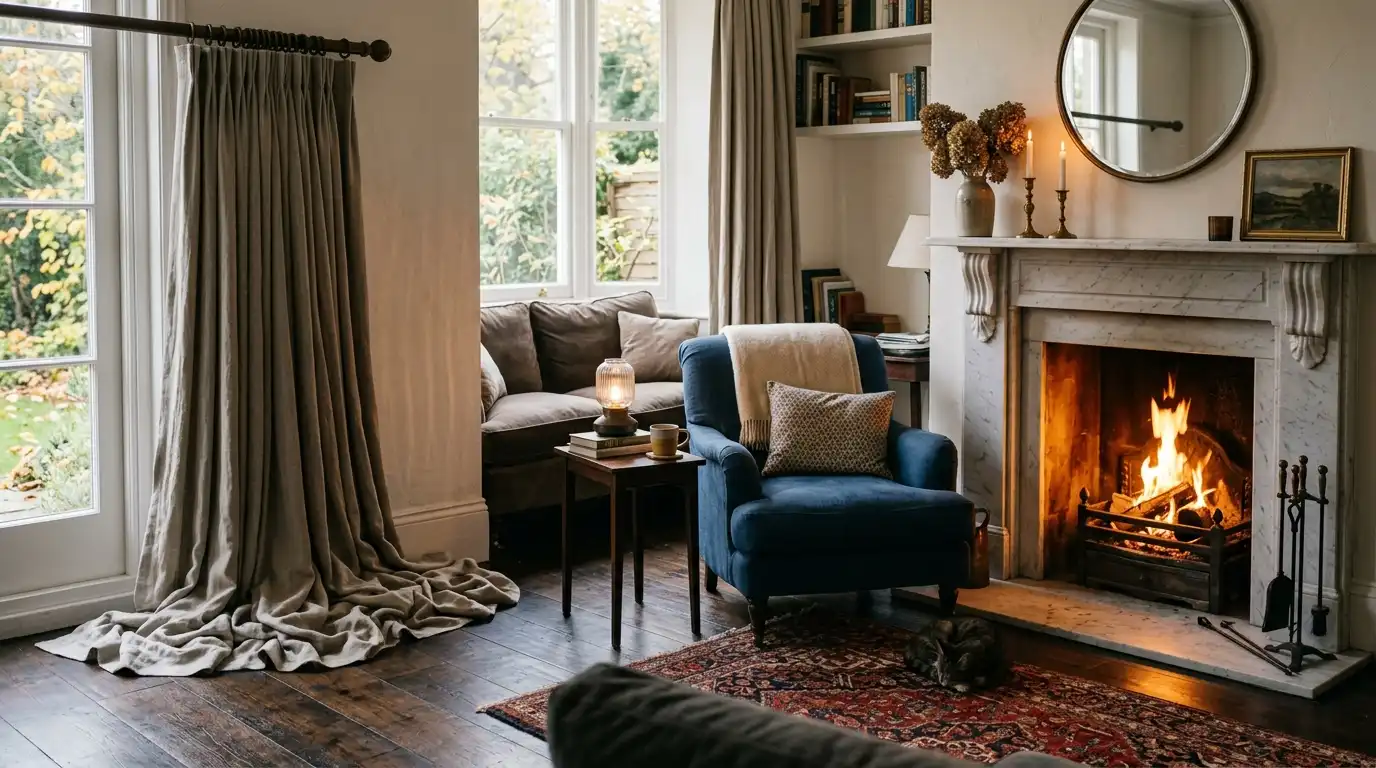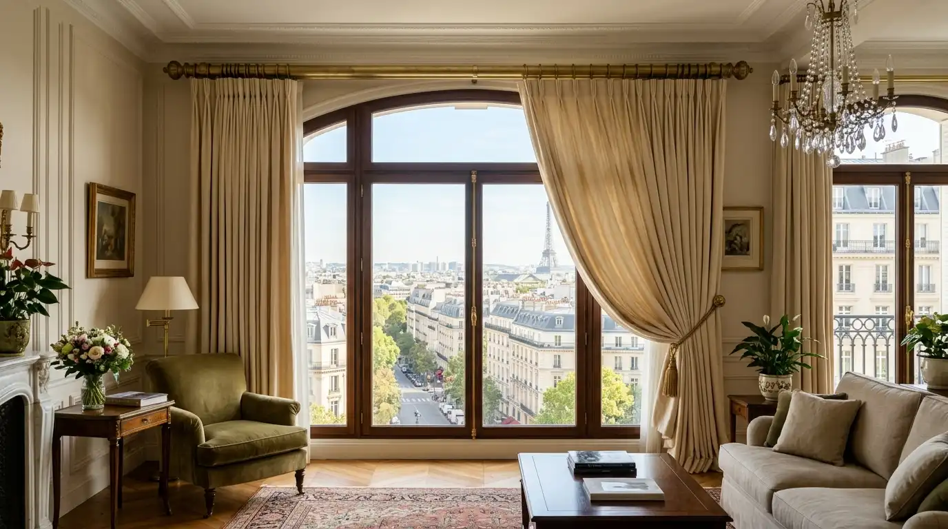 Order your “greige” (grey-beige) curtains 5 inches longer than the floor height. Allowing the heavy fabric to “puddle” adds an opulent, romantic feel that balances the rigidity of modern furniture.