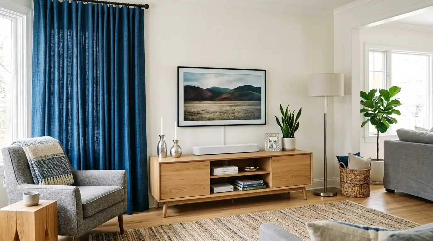 Living room blue curtains ideas: 9 ways to master the spectrum of serenity.