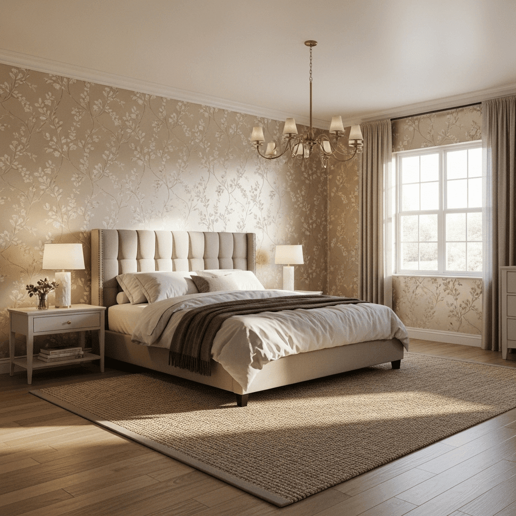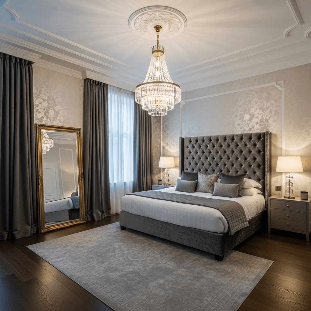 Instead of paint, use hand-painted silk or grasscloth wallpaper. The subtle sheen and texture of real silk reflect light beautifully and provide a level of wall-to-wall luxury that paint cannot match.