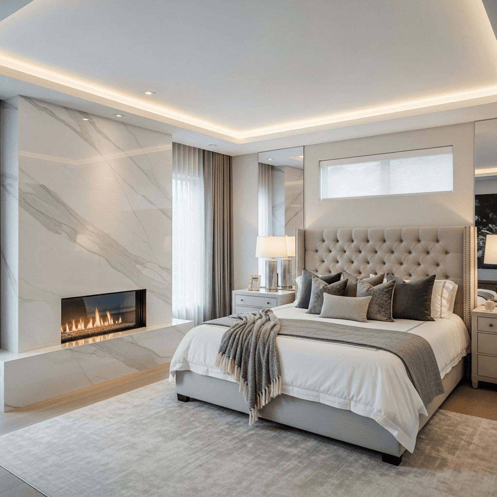 A modern linear gas fireplace or a classic marble hearth adds warmth and a flickering light source that is the height of cozy luxury. It creates an instant “lodge” or “manor” atmosphere.