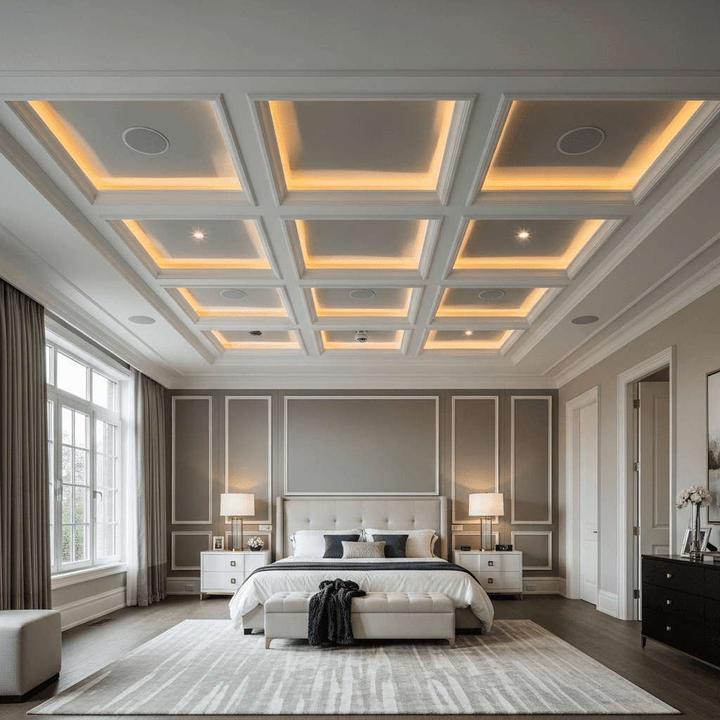 Luxury is also about sound. Modern suites often feature coffered ceilings with integrated acoustic panels and “invisible” speakers, providing an immersive audio experience without cluttered wires or bulky equipment.