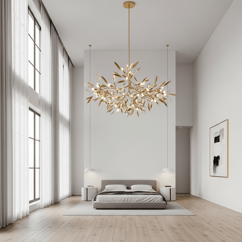 Treat your lighting as the room’s jewelry. An oversized, sculptural pendant made of brushed brass or polished chrome serves as a functional art piece that anchors the center of the room.