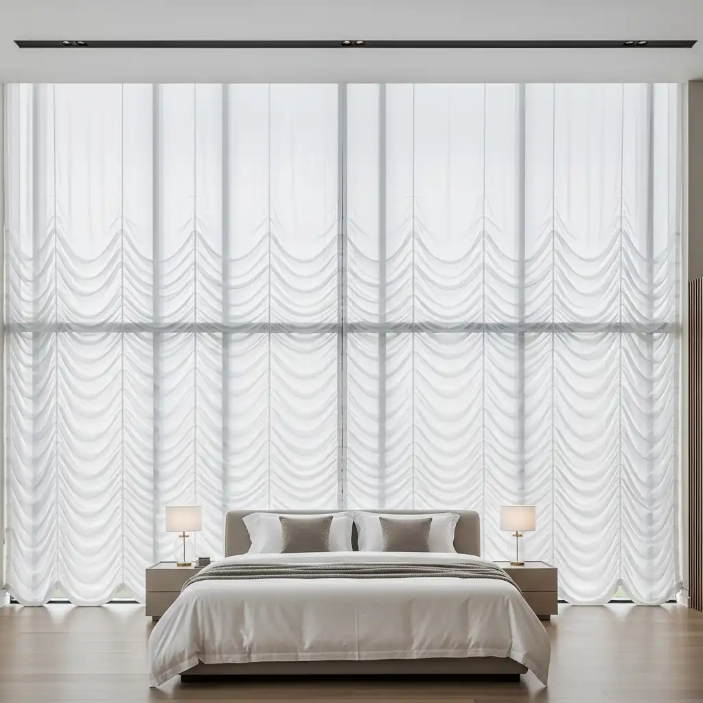 The wave fold (or S-fold) design uses a specific track to create soft, consistent waves in the fabric. In a sheer white material, this looks incredibly clean, modern, and ethereal.